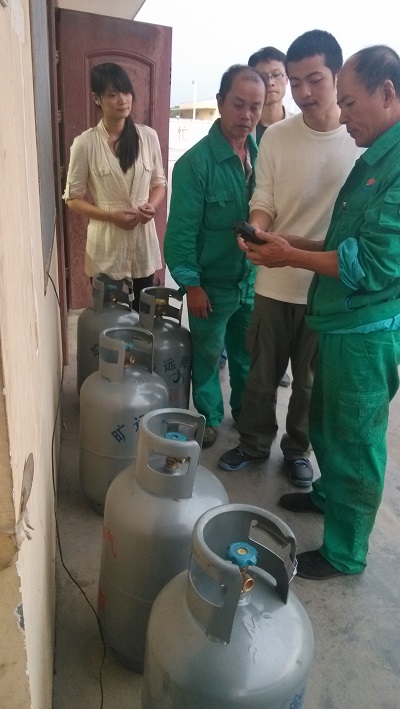 作品文字說明:液化氣鋼瓶條碼管理系統的培訓之主辦和送氣工。
